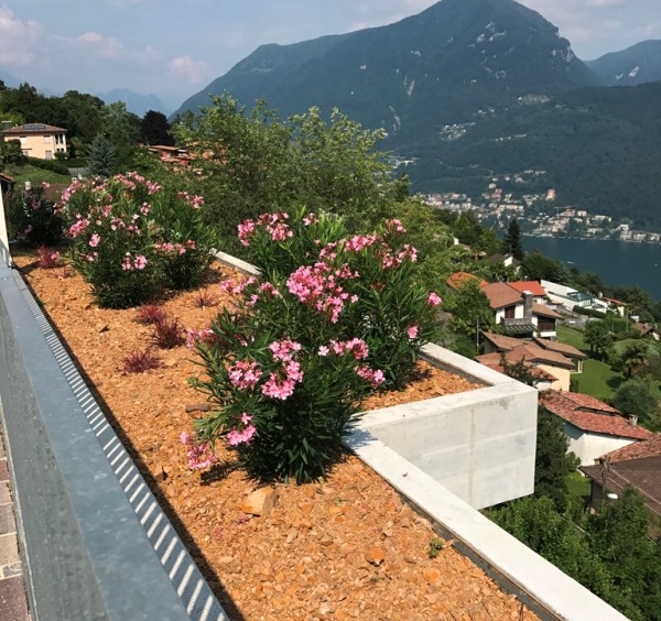 La costruzione è inserita nel verde, circondata da un giardino di proprietà in pendenza. Tutti gli appartamenti sono dotati di ampie terrazze.