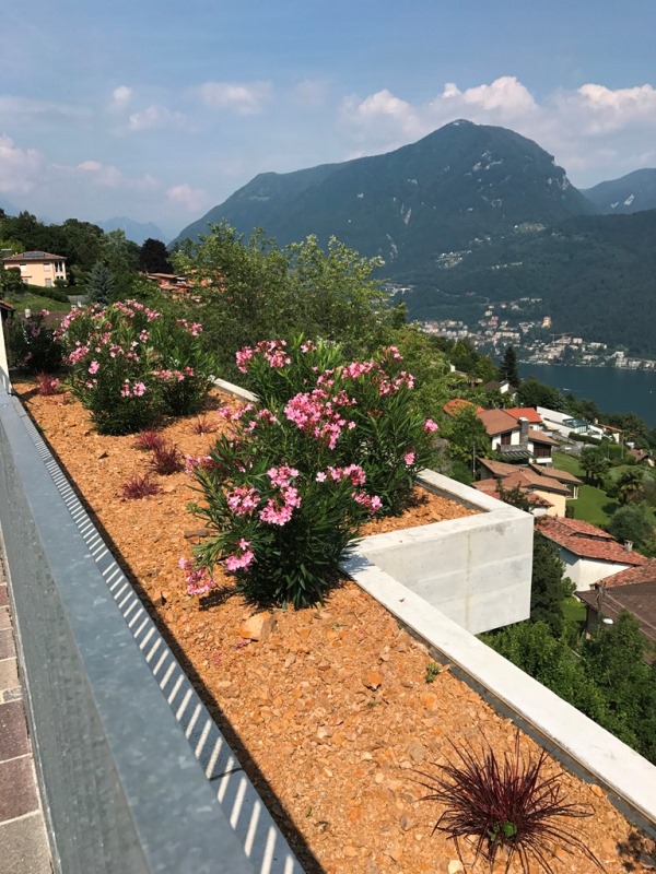 L’edificio di recente costruzione accoglie al proprio interno tre appartamenti di 3.5 locali di standing medio-alto, un parcheggio privato di 7 posti auto sistemato sulla copertura e gode di un orientamento rivolto a Sud/Est con uno splendido panorama sul lago di Lugano.